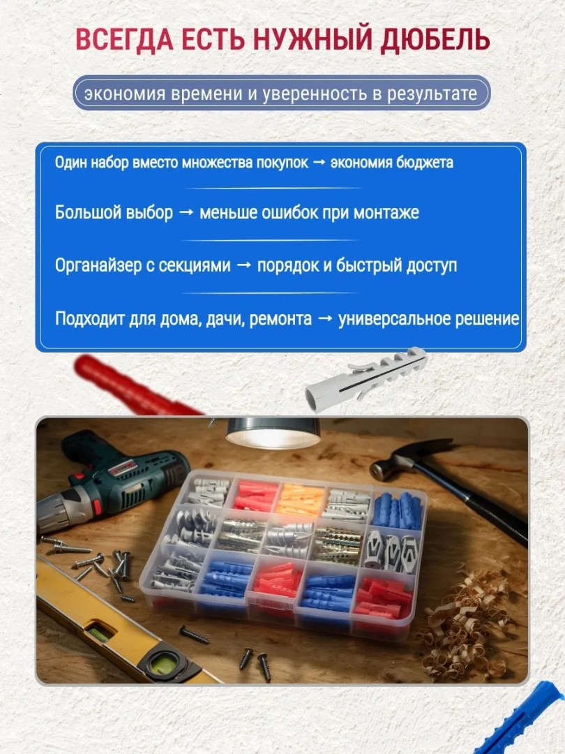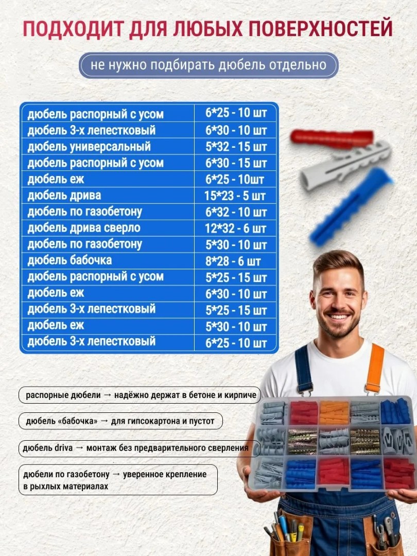 Набор крепежа " Домашний №3 " саморезы+дюбеля - 275 шт